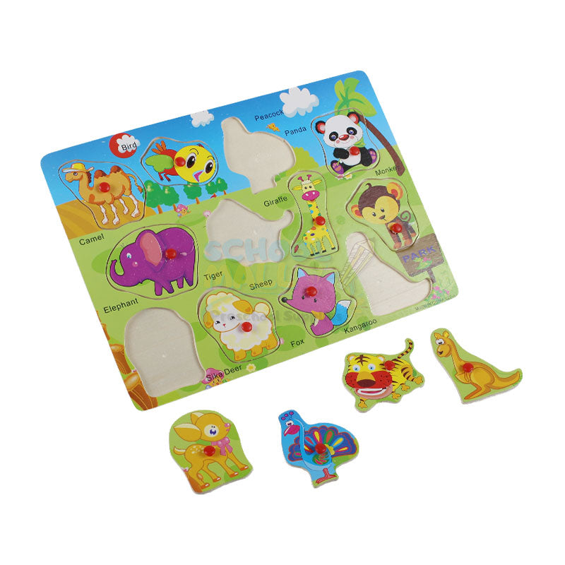 Introduce your child to the world of animals with the Animals Wooden Peg Puzzle Board from School Mall! This fun and educational wooden puzzle is designed to help toddlers and preschoolers recognize different animals while improving their vocabulary, memory, and problem-solving skills.
